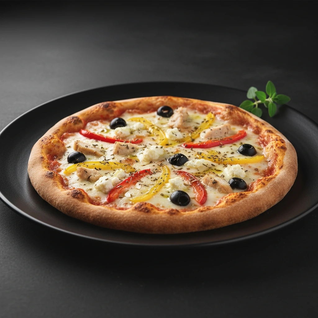 Roasted chicken, peppers, olives, oregano, and goat cheese